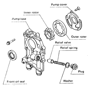 - Wash the disassembled oil pump in solvent. Allow the parts to dry completely