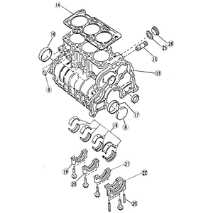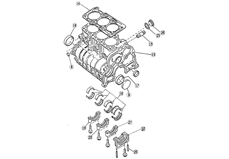 | Fig. 1: Cylinder block assembly — except 1.2L engine |