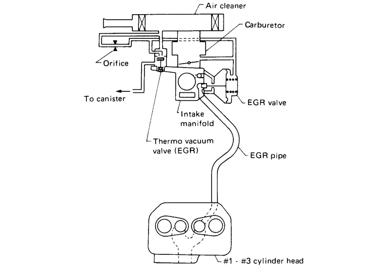 | Fig. 1: EGR system — carbureted vehicle without a computer controlled engine |