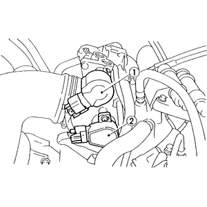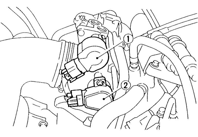 | Fig. 1: Idle air control valve (1) above the throttle position sensor (2) — Legacy |