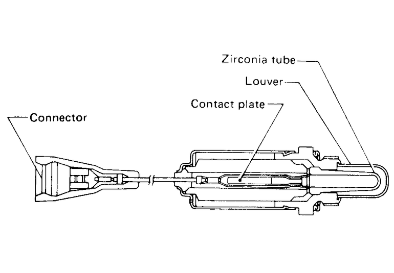 There are two types of oxygen sensor's used in these vehicles. They are the single wire oxygen sensor (02S) and the heated oxygen sensor (H02S). The oxygen sensor is a spark plug shaped device that is screwed into the exhaust manifold. It monitors the oxygen content of the exhaust gases and sends a voltage signal to the Electronic Control Module (ECU). The ECU monitors this voltage and, depending on the value of the received signal, issues a command to the mixture control solenoid on the carburetor to adjust for rich or lean conditions.