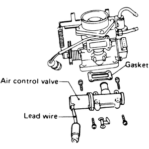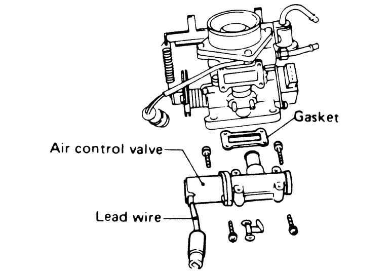 Remove the air control valve retainer screws and valve assembly, gasket and lead wire from the venturi chamber.