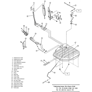- Disconnect the fuel hose and air vent hose. Remove the fuel tank cap using