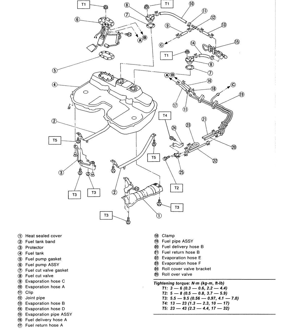- Disconnect the fuel delivery, return and evaporative hoses from each pipe.
