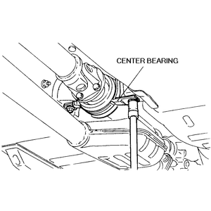 NOTE: If equipped with a center bearing, remove the center bearing to chassis bolts and lower the assembly from the vehicle. Also note that the SVX uses an double offset type joint at the center of the driveshaft.