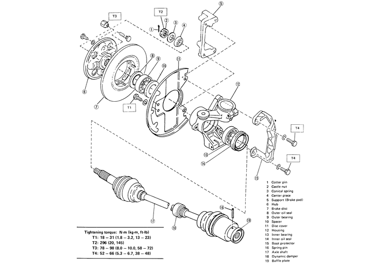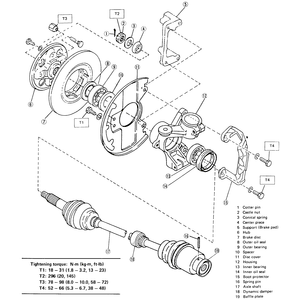 | Fig. 1: Exploded view of the halfshaft and front hub assemblies |