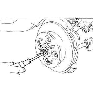 | Fig. 12: Using a special puller tool, press the axle