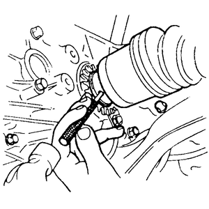 | Fig. 5: Using a special tool to separate the halfshaft