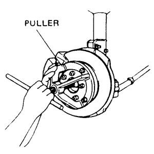 | Fig. 13: Use two 8mm bolts to loosen the rotor from