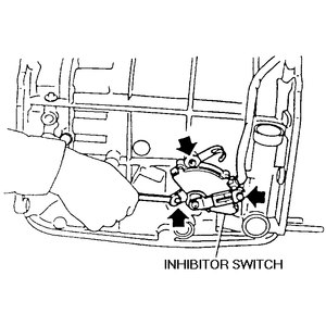 - Remove the 2 bolts holding the inhibitor switch to the shifter assembly.