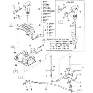 - Assembly the selector handle, spring, 4WD switch and button as follows: