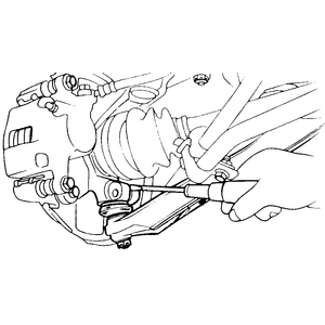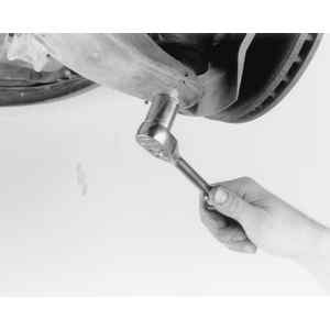 | Fig. 12: Loosening the steering knuckle pinch bolt. The