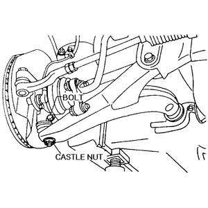 | Fig. 5: Loosen and remove the castle nut from the ball