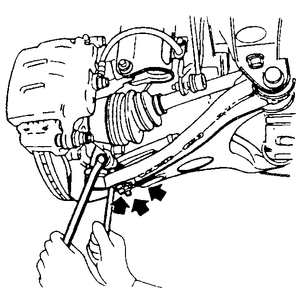 arrows indicate the ball joint-to-control arm retaining nut locations