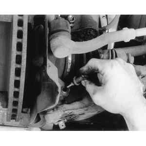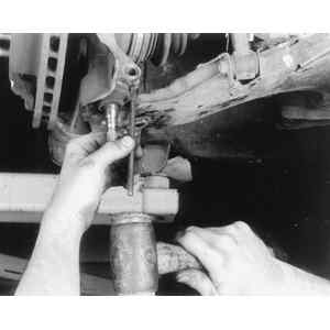 | Fig. 8: Loosen the steering knuckle pinch bolt . . .