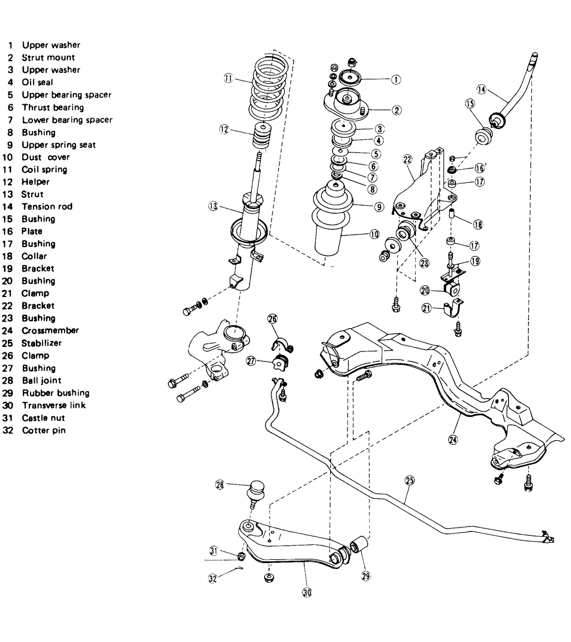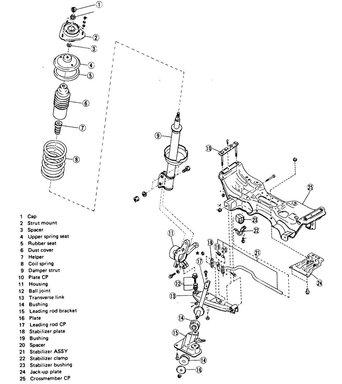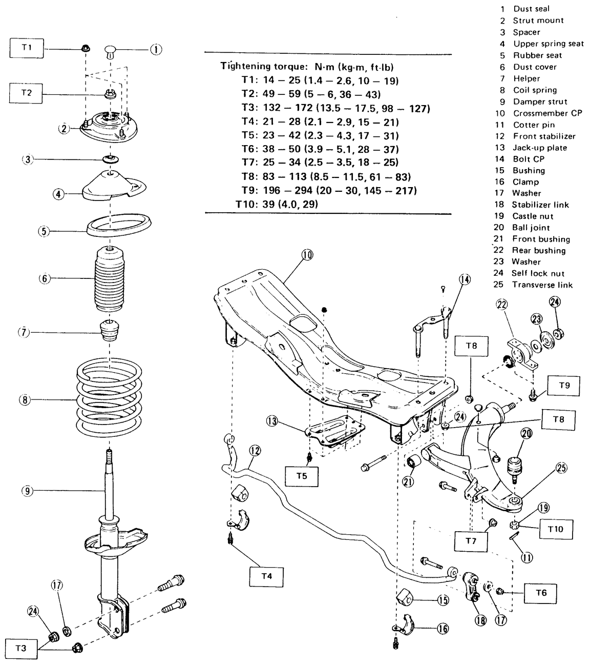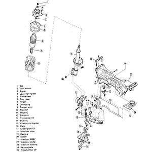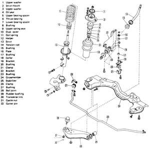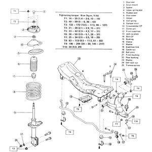 | Fig. 1: Front suspension assembly — Justy