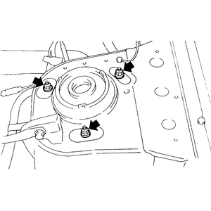 - Remove the three strut plate mounting nuts.