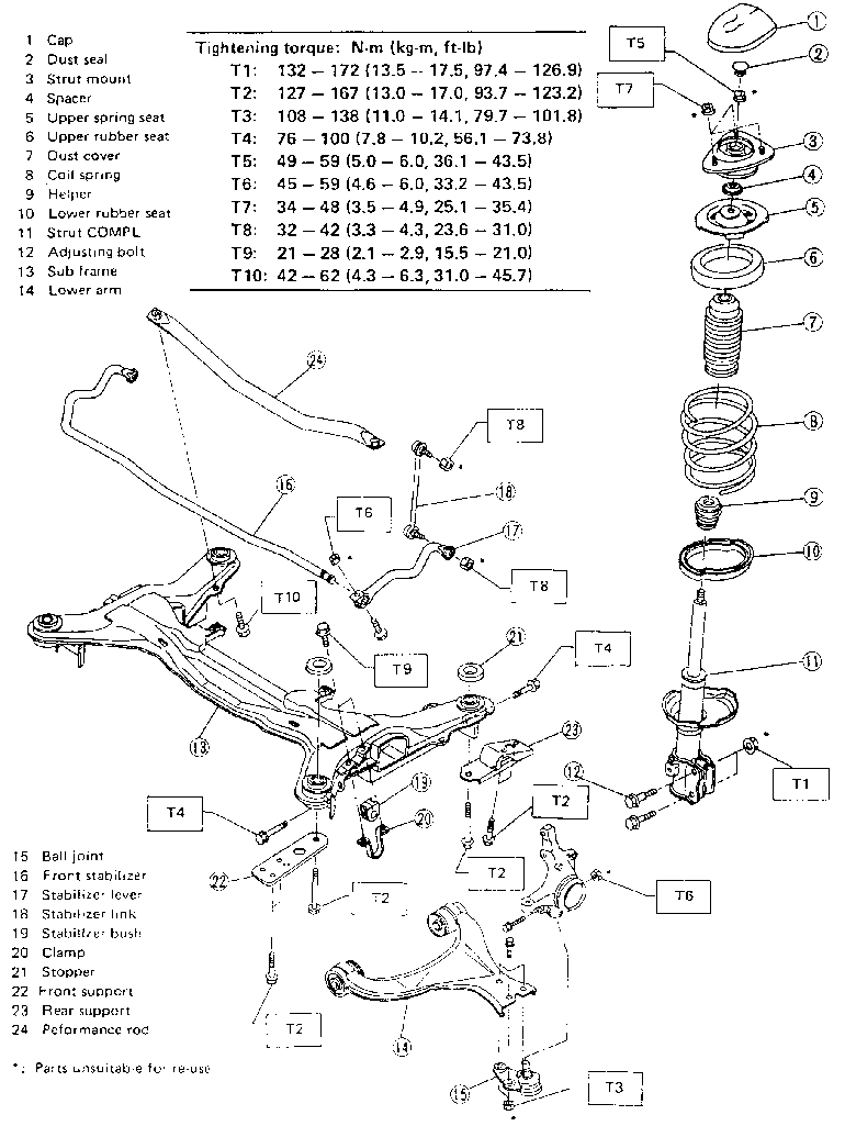 the strut tower bolt holes. Install the mounting nuts and tighten to 10 ft.