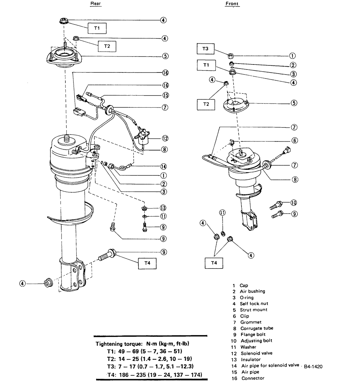 | Fig. 1: Front pneumatic suspension assembly—Sedan,