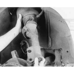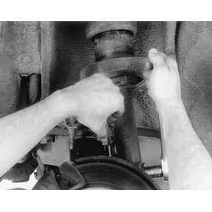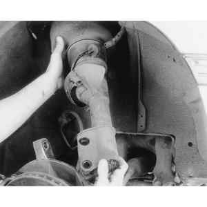 - Remove the nuts from the lower strut mounting bolts. Remove the lower mounting