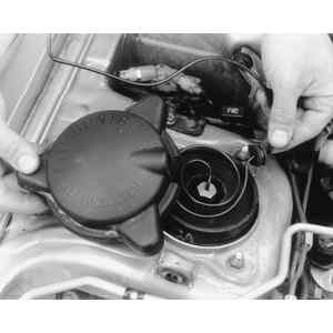 - Remove the strut mount cap in the engine compartment.