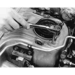 | Fig. 16: Loosen the bearing cap retainer nuts