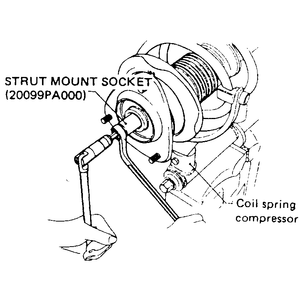 Do not remove the large nut on top of the strut assembly unless the coil spring