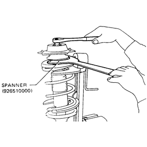- Remove the strut retainer nut using a suitable wrench. Remove the strut