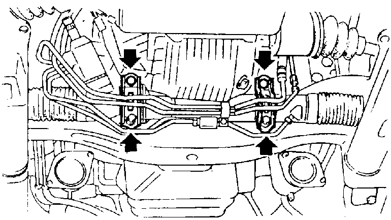 | Fig. 1: Remove the steering rack retainer bolts |