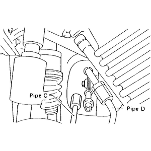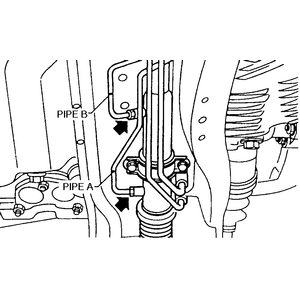 NOTE: When discharging the power steering fluid (line A and B), turn the steering wheel fully, left and right. Be sure to disconnect the other pipe and drain the fluid in the same manner.