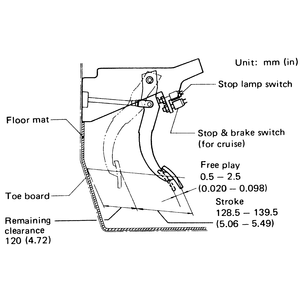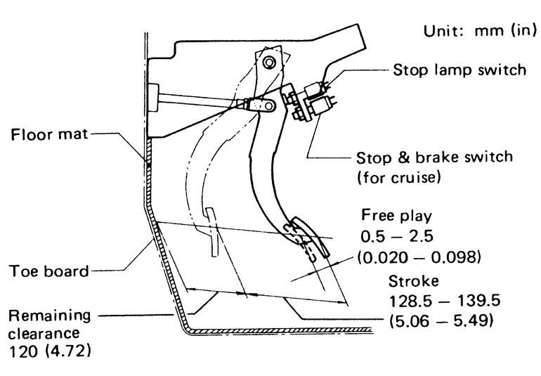 The brake pedal travel is the distance the pedal moves toward the floor from the fully released position.