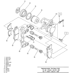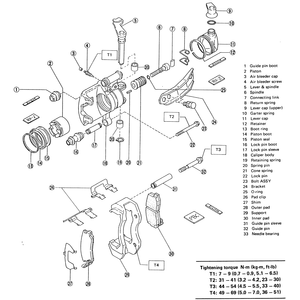 | Fig. 7: Front caliper assembly — Legacy