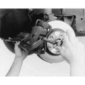 | Fig. 10: Lift the caliper up to access the pads