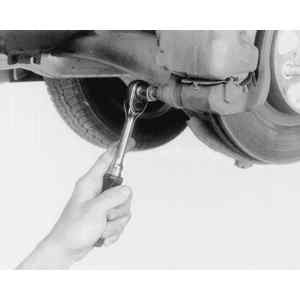 | Fig. 9: Loosen and remove the caliper lower retainer
