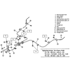 | Fig. 2: Parking brake assembly — Legacy and Impreza |