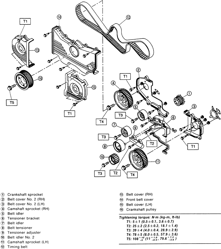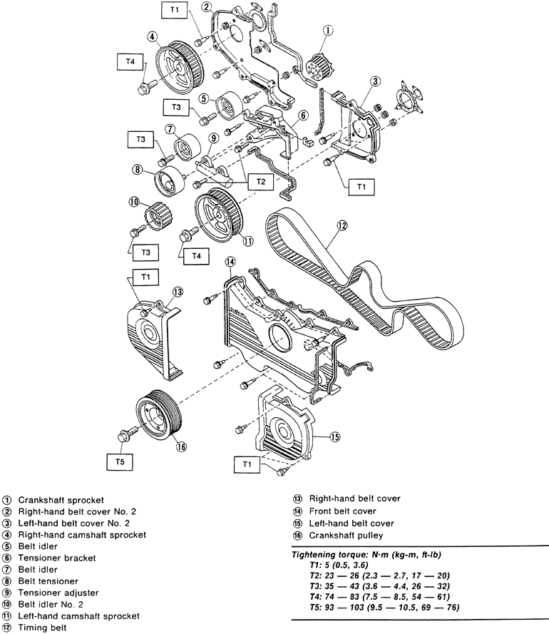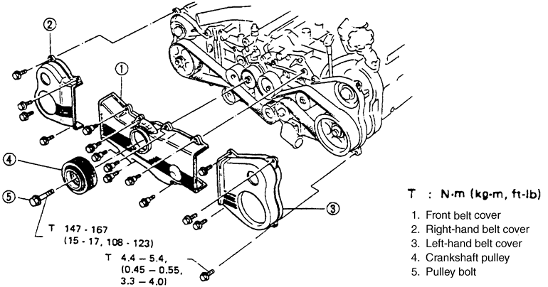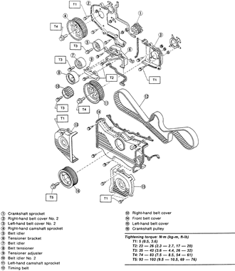 | Exploded view of the timing belt covers and components — 2.5L engine |