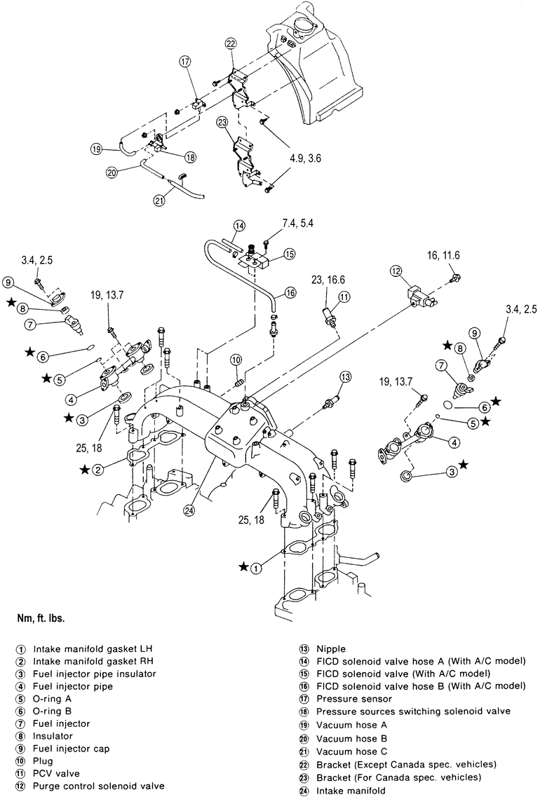 | Exploded view of the intake manifold and related components — 2.5L engine |