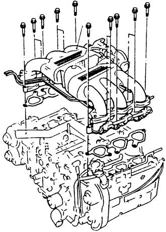 NOTE: The intake manifold sits on pins that protrude from the cylinder heads. Be sure the pins remain in the cylinder heads.