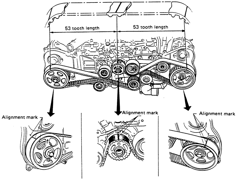 - With the crankshaft marks aligned be sure the left and right camshaft