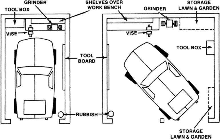 Obviously, the arrangement of your shop depends a great deal on just what kind of shop you have in the first place. If you have very limited floor space, careful use of wall space will be the key to allowing yourself working room. If you're like most of us, you probably have a million things in the garage already, which isn't going to help matters. Put up some shelves or get some pegboard to hang tools on. Make sure you have plenty of lighting in the garage. If you don't have enough lights, install some more. There's nothing worse than trying to work by the light of a flashlight or a trouble light. Keep the floor clean and make sure you have adequate ventilation. Keep flammable liquids outside, and anchor all the benches and any heavy equipment you may have.