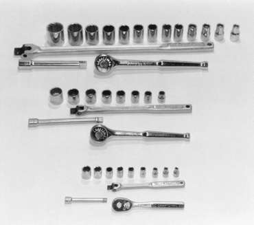 | Fig. 1: Common ratchet sets come in 1⁄2 inch, 3⁄8 inch,