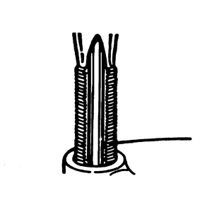 | Fig. 20: Screw the thread insert onto the thread installation tool until the tang engages the slot. Screw the insert into the tapped hole until it is 1⁄4 – 1⁄2 turn below the top surface. After installation break the tang off with a hammer and punch. |