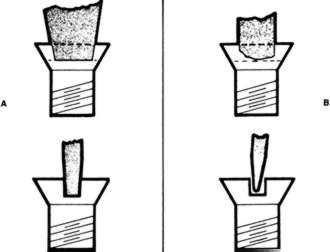 | Fig. 4: Keep your screwdriver tips in good shape. They should fit in the screw slot as shown in "A". If they look like the ones in "B" they need to be ground or replaced. |