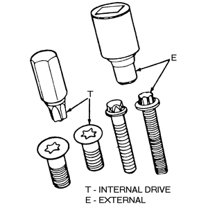 These fasteners come in three different types. The most common being internal, these fasteners require a star shaped driver and are frequently found on headlight retainers and adjusters. The second type is external, these fasteners require a star shaped socket and may be found in odd locations such as the wheel cylinder retaining bolts. The third type is tamper resistant, which are used in places that manufacturer's are very serious about avoiding a Do-It-Yourselfer (DIYer) from touching. These look similar to the internal type however, they have a pin in the center of the fastener preventing the use of the standard Torx® driver. They may be found on components that are meant to be serviced only by authorized repair centers.