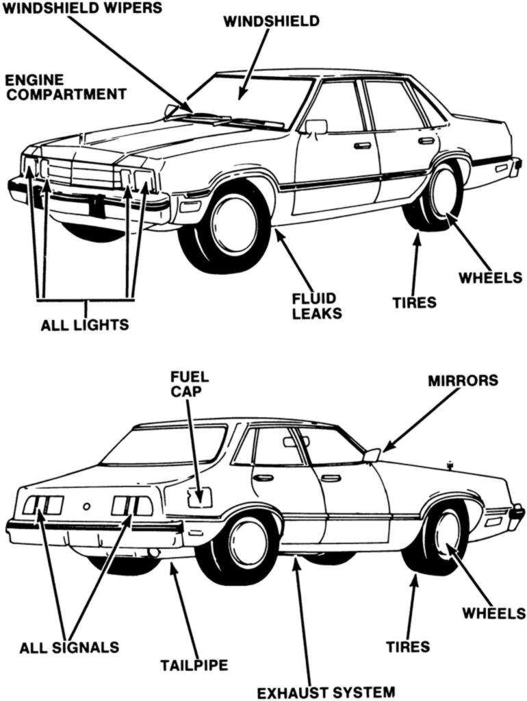| Fig. 5: Walk around your vehicle and check the items listed |