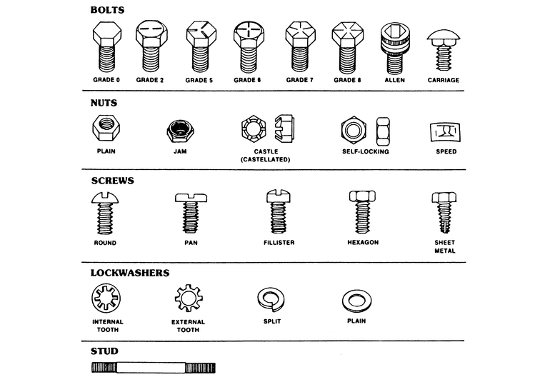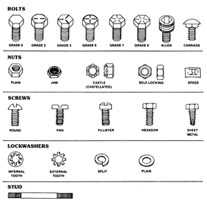 SAE fasteners are also identified by size. As an example, a 3⁄8 –24 bolt means that the major (greatest) thread diameter is 3⁄8 inch and that there are 24 threads per inch. The head diameter is always 3⁄16 inch larger than the bolt diameter. A 1⁄2 16 bolt would be 1⁄2 inch in diameter and have 16 threads per inch. More threads per inch are called "fine" threads and less threads per inch are "coarse" threads. Generally, the larger the bolt diameter, the coarser the threads. There are actually six different classes of threads, but most bolts are Unified National Coarse (UNC) or Unified National Fine (UNF). The term "Unified" refers to a thread pattern to which US, British and Canadian machine screw threads conform.