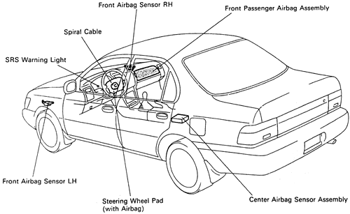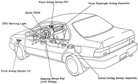 | Fig. 1: Typical components of a supplemental restraint system (SRS) air bag |