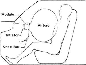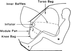 | Fig. 3: Low mounted passenger air bags are designed to give lower torso protection in frontal impact situations |