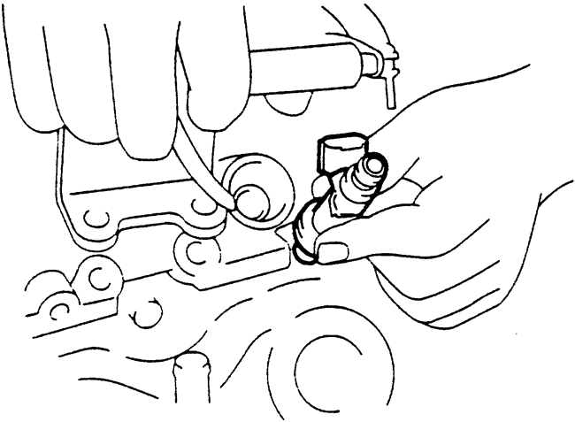 Fig. 1: View of fuel injector removal on 1999-02 models