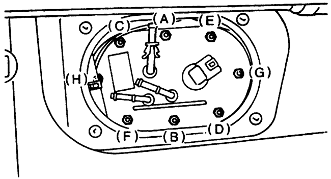 Fig. 2: Fuel pump mounting nut tightening sequence